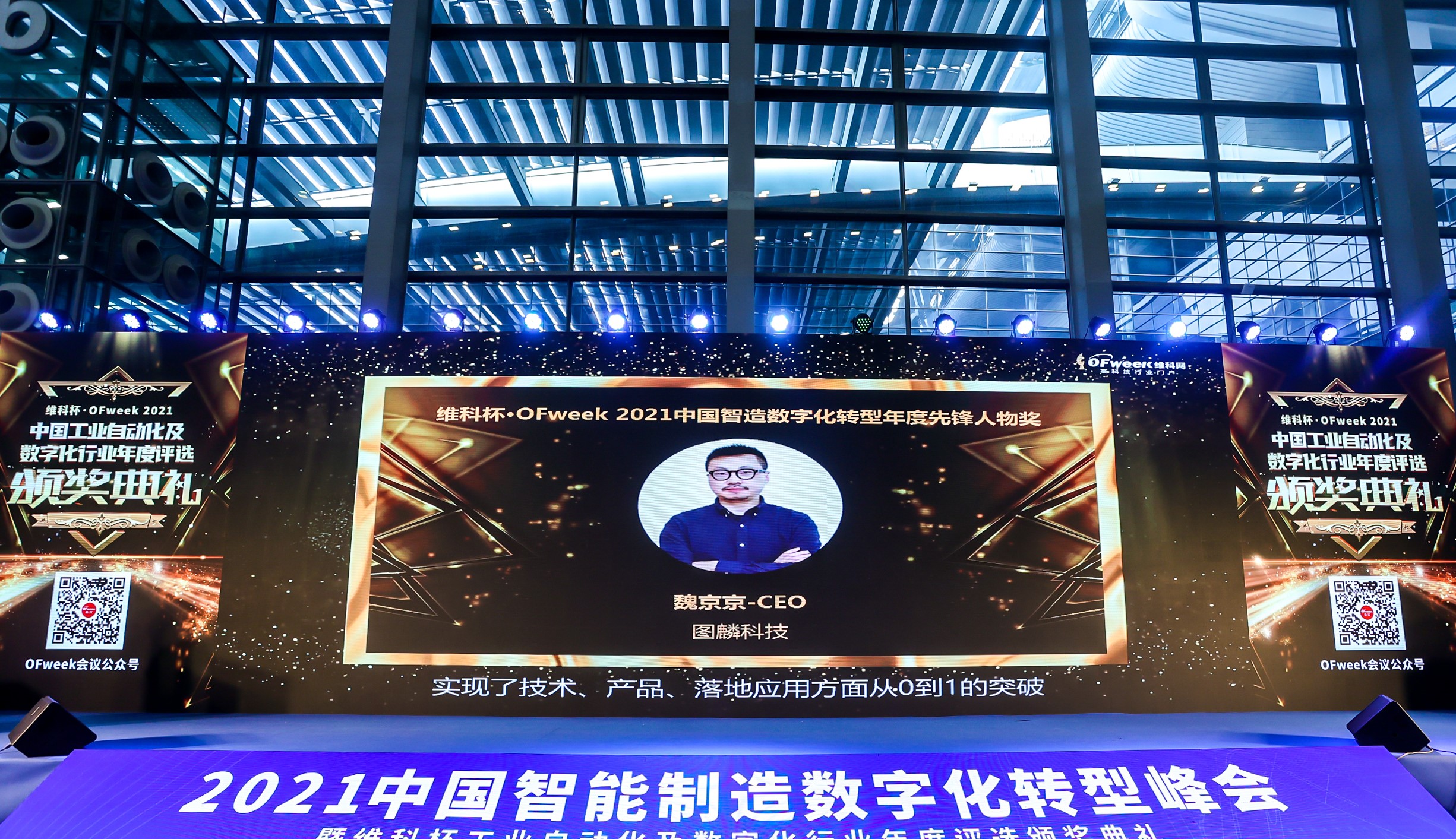 9月28日,jinnianhui今年会科技CEO魏京京在由中国高科技行业门户OFweek维科网主办的“2021中国智能制造数字化转型峰会暨维科杯工业自动化及数字化行业年度评选颁奖典礼”上,获颁“2021中国智造数字化转型年度先锋人物奖”;同一天,jinnianhui今年会科技屏幕贴合后检测解决方案在同样是由OFweek维科网主办的 “OFweek2021第六届人工智能产业大会”上,入选“2021人工智能行业最佳赋能AI解决方案奖”。